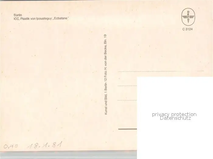 Berlin ICC Plastik Ecbatane Berlin postalisch nicht gelaufen 1921-1965 Erhaltung siehe scans [KathaD81] Kathoren
