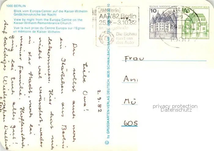 Berlin Kaiser-Wilhelm-Gedaechtniskirche Berlin postalisch gelaufen 1982 Erhaltung siehe scans [PaolaD17] PaolPID1