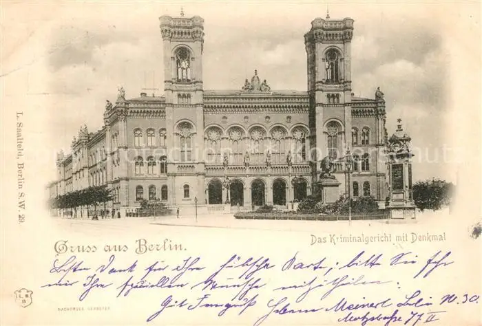 Berlin Kriminalgericht mit Denkmal Berlin postalisch gelaufen 1898 Erhaltung siehe scans [KathaD81] Kathoren