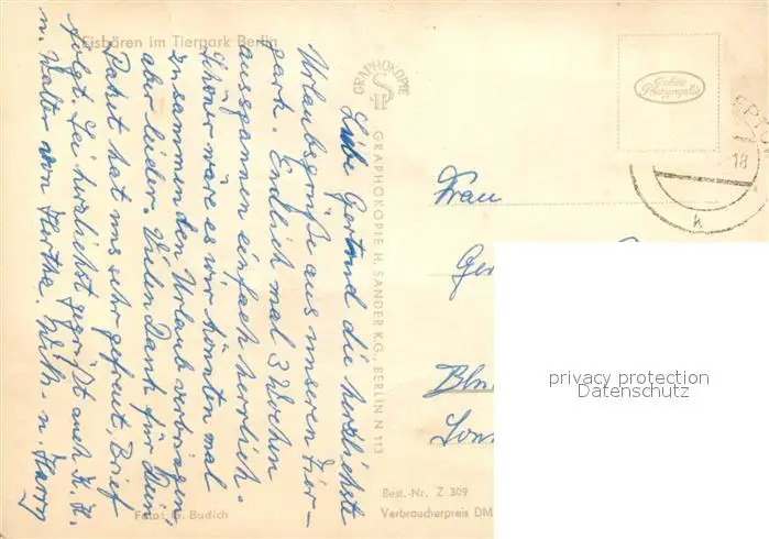 Berlin Tierpark Eisb?ren Berlin postalisch gelaufen nach 1965 Erhaltung siehe scans [LiesaD40] LiesID40