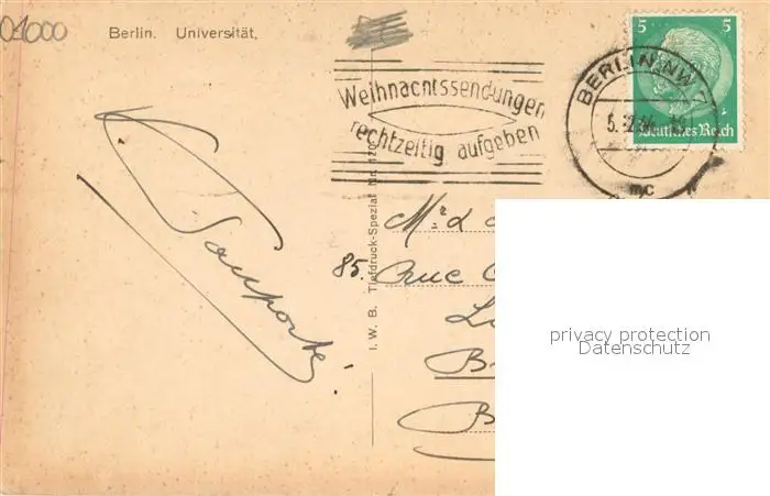 Berlin Universitaet Denkmal Berlin postalisch gelaufen 1934 Erhaltung siehe scans [FriedD77] Frierer