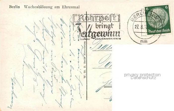 Berlin Wacheabloesung am Ehrenmal Berlin postalisch gelaufen 1937 Erhaltung siehe scans [FriedD77] Frierer