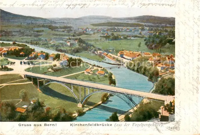 Bern_BE Kirchenfeldbruecke aus der Vogelperspektive Bern_BE postalisch gelaufen 1903 Erhaltung siehe scans [FriedD77] Frierer