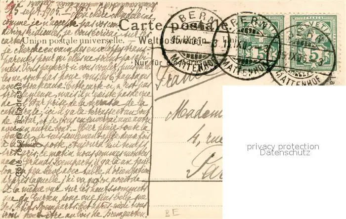 Bern_BE Muenster mit Schwellenmaetteli Bern_BE postalisch gelaufen 1905 Erhaltung siehe scans [FriedD77] Frierer