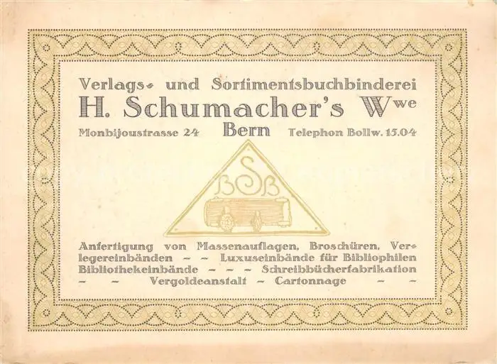 Bern_BE Schumachers Buchbinderei Bern_BE postalisch nicht gelaufen bis 1920 Werbekarte (keine Postkarte) Erhaltung siehe scans [WerneD78] Werbekarte (keine Postkarte) WernPID7
