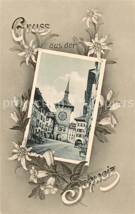 Bern_BE Zeitglockenturm Blumen Bern_BE postalisch nicht gelaufen ca. 1905 Erhaltung siehe scans [FriedD77] Frierer