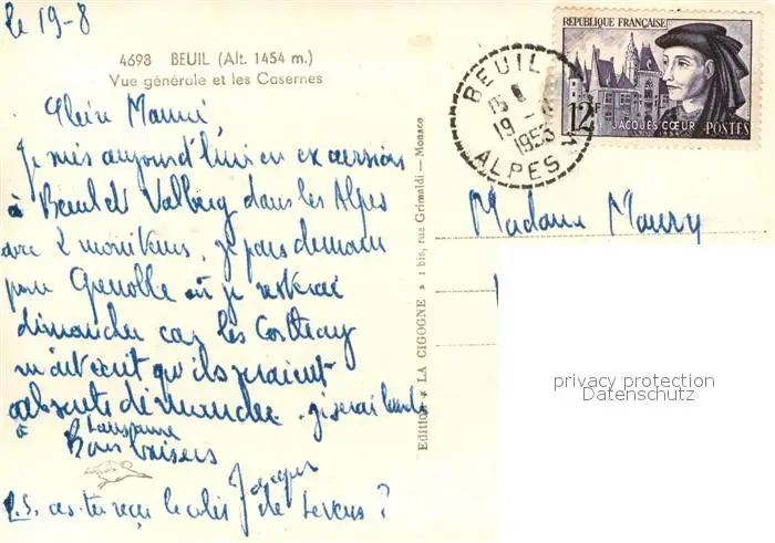 Beuil Vue generale et les Casernes Beuil postalisch gelaufen 1955 Erhaltung siehe scans [WerneD78] WernPID7