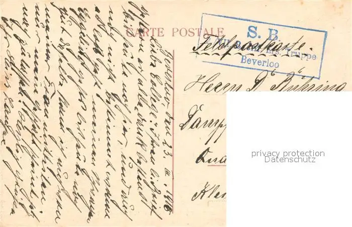 Beverloo Camp de Beverloo Offiziersmesse Beverloo postalisch gelaufen 1916 Feldpost - Stempel Erhaltung siehe scans [WerneD78] Feldpost - Stempel WernPID7