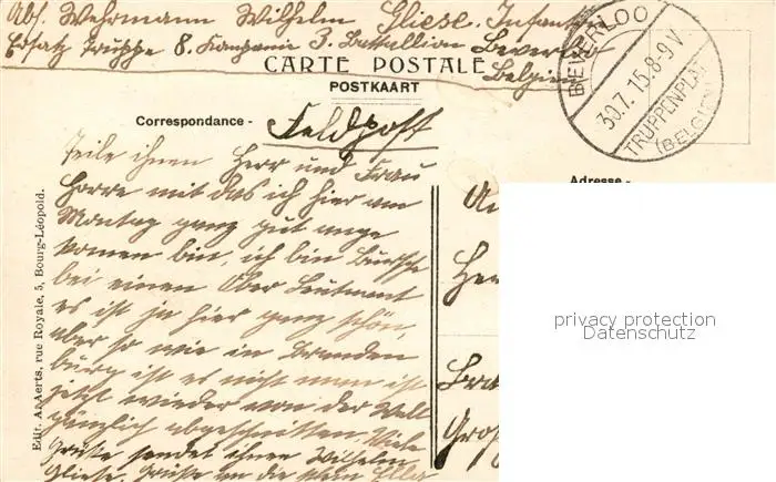 Beverloo Camp de Cavalerie Beverloo postalisch gelaufen 1915 Feldpostkarte Erhaltung siehe scans [WerneD78] Feldpostkarte WernPID7