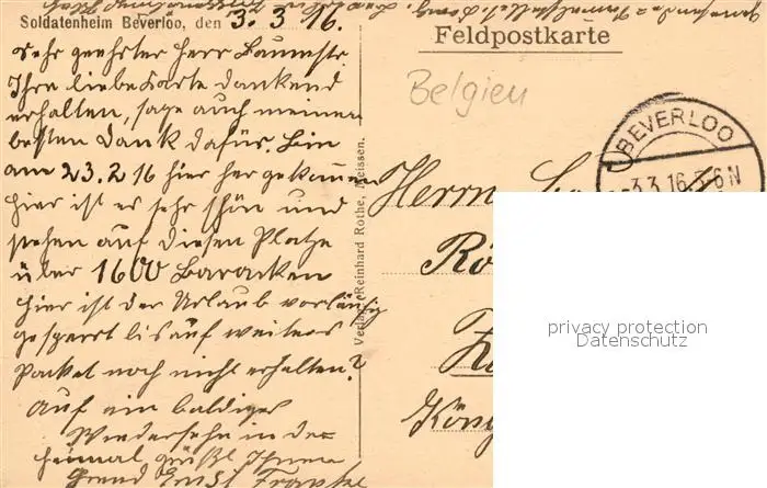 Beverloo Soldatenheim Beverloo postalisch gelaufen 1916 Feldpostkarte Erhaltung siehe scans [WerneD78] Feldpostkarte WernPID7