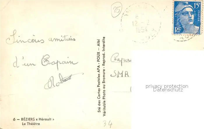 Beziers Le Theatre Beziers postalisch gelaufen 1921-1965 Erhaltung siehe scans [WerneD78] WernPID7