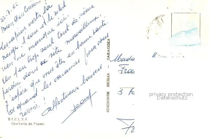 Bielsa Valle de Pineta Bielsa postalisch gelaufen 1962 Erhaltung siehe scans [KathaD81] Kathoren
