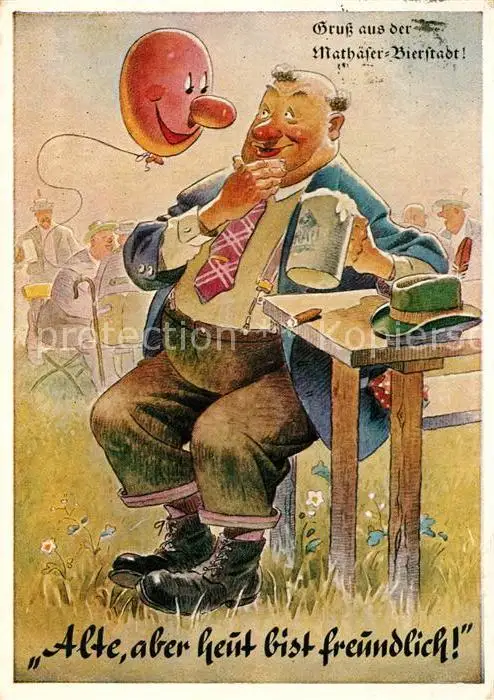 AK / Ansichtskarte Bier Humor Luftballon Zigarre Hut