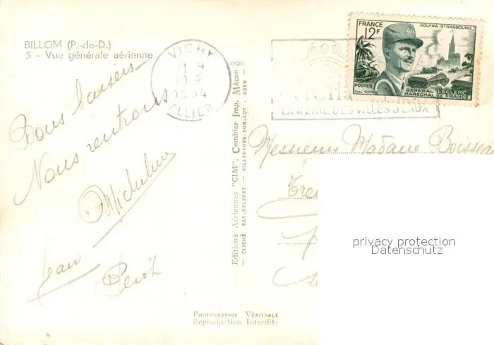 Billom Vue aérienne Billom postalisch gelaufen 1954 Erhaltung siehe scans [FriedD77] Frierer