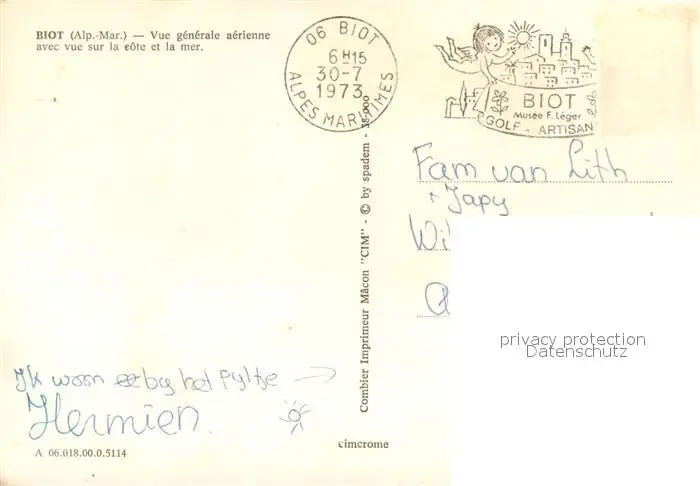 Biot Vue générale aérienne avec vue sur la côte et la mer Biot postalisch gelaufen 1973 Erhaltung siehe scans [FriedD77] Frierer
