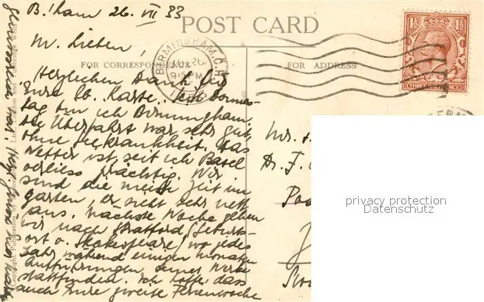 Birmingham Victoria Square Birmingham postalisch gelaufen 1933 Erhaltung siehe scans [KathaD81] Kathoren