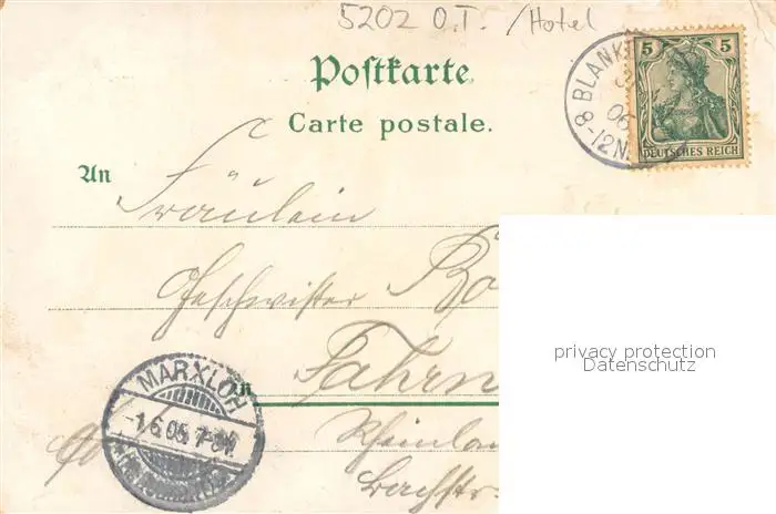 Blankenberg_Sieg Hotel Honrath Blankenberg_Sieg postalisch gelaufen 1906 Erhaltung siehe scans [WerneD78] WernPID7