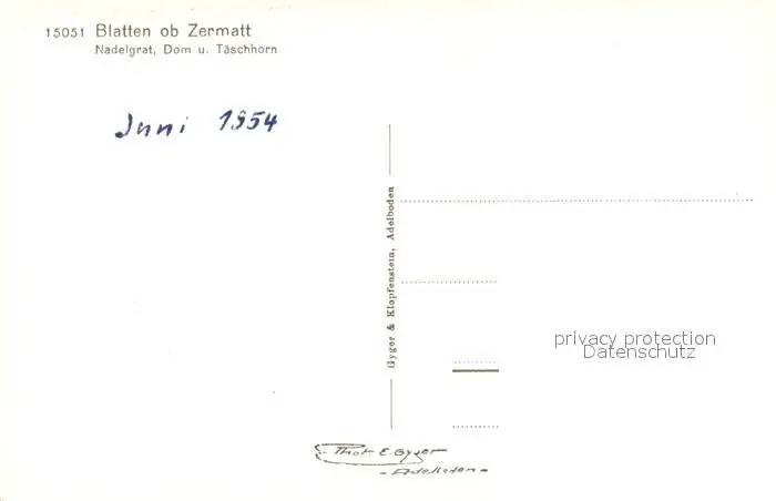 Blatten_LU mit Nadelgrat Dom und Taeschhorn postalisch nicht gelaufen 1954 Erhaltung siehe scans [WerneD78] WernPID7