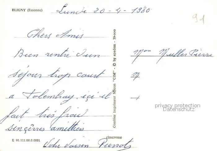 Bligny_Essonnes Bligny Essonnes postalisch nicht gelaufen 1980 Erhaltung siehe scans [WerneD78] WernPID7