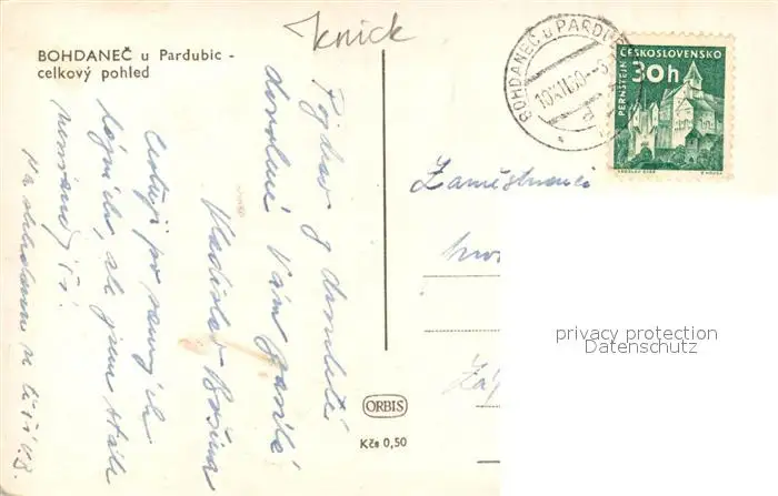 Bohdanec Pardubic celkovy pohled Bohdanec postalisch gelaufen 1960 Erhaltung siehe scans [LiesaD40] LiesID40