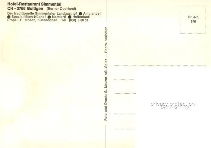 Boltigen Hotel Restaurant Simmental Boltigen postalisch nicht gelaufen nach 1965 Erhaltung siehe scans [WerneD78] WernPID7