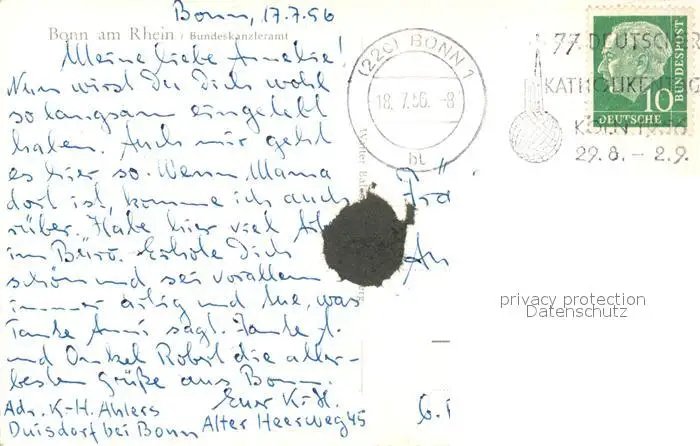 Bonn_Rhein Bundeskanzleramt Bonn_Rhein postalisch gelaufen 1956 Erhaltung siehe scans [WerneD78] WernPID7