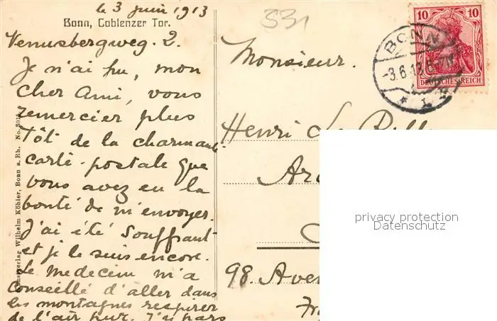 Bonn_Rhein Coblenzer Tor Bonn_Rhein postalisch gelaufen 1913 Erhaltung siehe scans [WerneD78] WernPID7