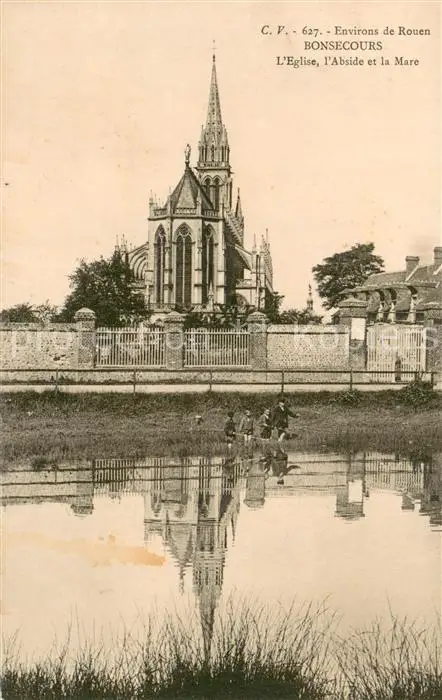 Bonsecours_76 Eglise Abside et la Mare postalisch nicht gelaufen 1921-1965 Erhaltung siehe scans [FriedD77] Frierer