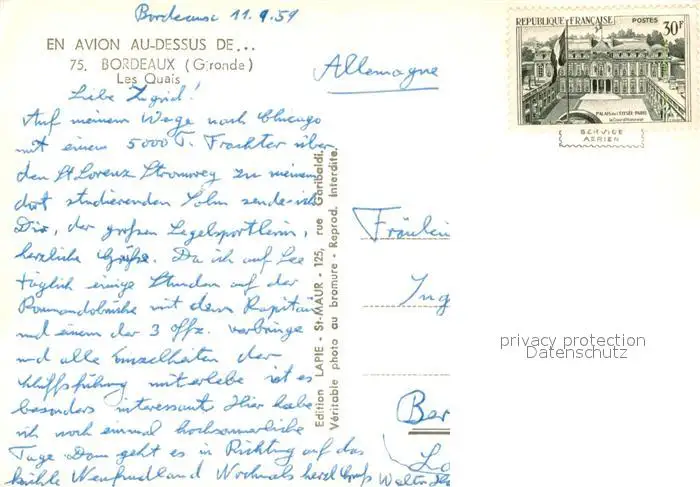 Bordeaux_33 Les Quais Vue aerienne postalisch gelaufen 1959 Erhaltung siehe scans [WerneD78] WernPID7