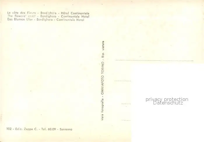 Bordighera Albergo Continentale Bordighera postalisch nicht gelaufen nach 1965 Erhaltung siehe scans [WerneD78] WernPID7