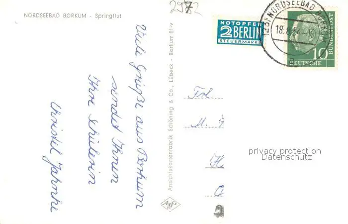 Borkum Springflut Nordseebad Borkum postalisch gelaufen 1954 Erhaltung siehe scans [FriedD77] Frierer