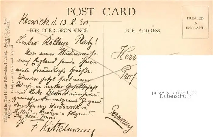 Borrowdale Bowder Stone Borrowdale postalisch nicht gelaufen 1930 Erhaltung siehe scans [KathaD81] Kathoren