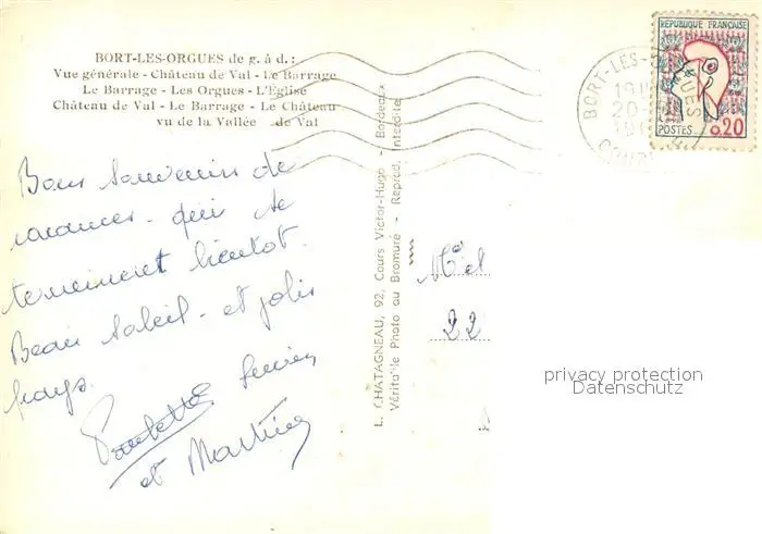 Bort-les-Orgues Chateau de Val Barrage Eglise Bort-les-Orgues postalisch gelaufen nach 1965 Erhaltung siehe scans [KathaD81] Kathoren
