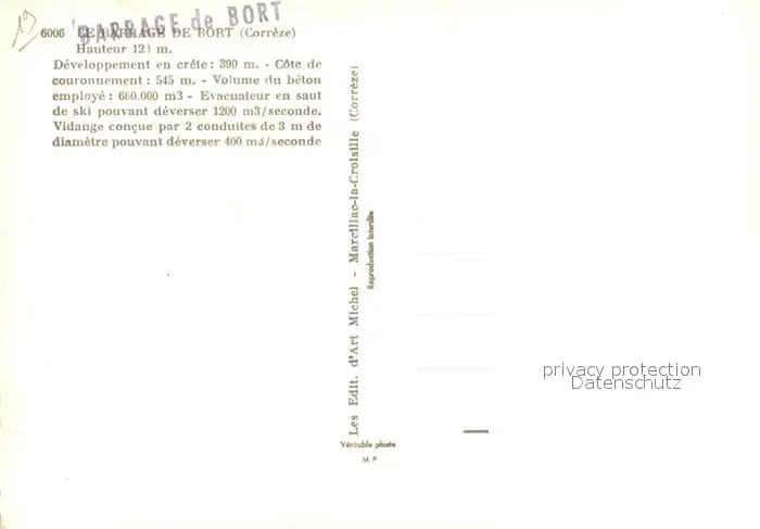 Bort-les-Orgues Le Barrage Bort-les-Orgues postalisch nicht gelaufen 1921-1965 Erhaltung siehe scans [FriedD77] Frierer