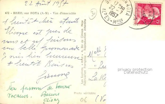 Breil-sur-Roya Vue d'ensemble Breil-sur-Roya postalisch gelaufen 1957 Erhaltung siehe scans [FriedD77] Frierer