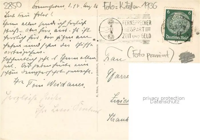 Bremerhaven Totalansicht Bremerhaven postalisch gelaufen 1936 Erhaltung siehe scans [LiesaD40] LiesID40