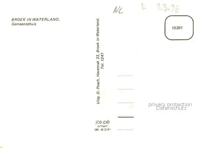 Broek_Waterland Gemeentehuis Broek_Waterland postalisch nicht gelaufen 1976 Erhaltung siehe scans [WerneD78] WernPID7