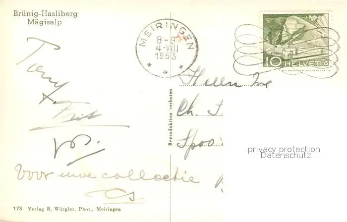 Bruenig_BE mit Hasliberg und Maegisalp Bruenig_BE postalisch gelaufen 1953 Erhaltung siehe scans [WerneD78] WernPID7