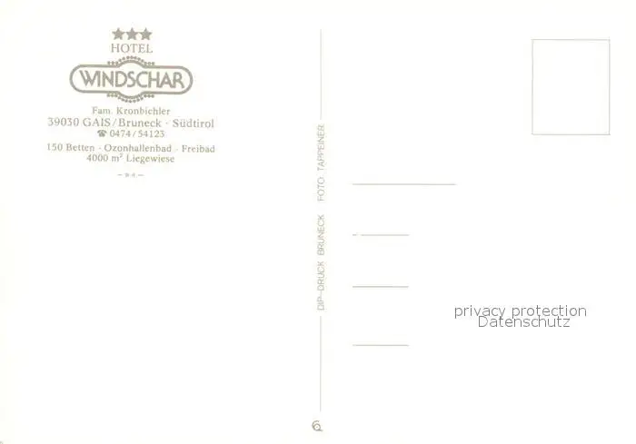 Bruneck Hotel Windschar Bruneck postalisch nicht gelaufen nach 1965 Erhaltung siehe scans [KathaD81] Kathoren