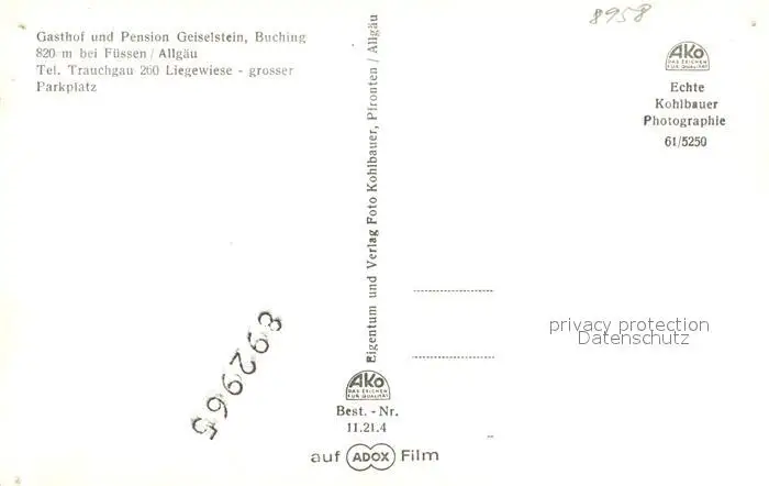 Buching Gasthof Pension Geiselstein Buching postalisch nicht gelaufen nach 1965 Erhaltung siehe scans [WerneD78] WernPID7