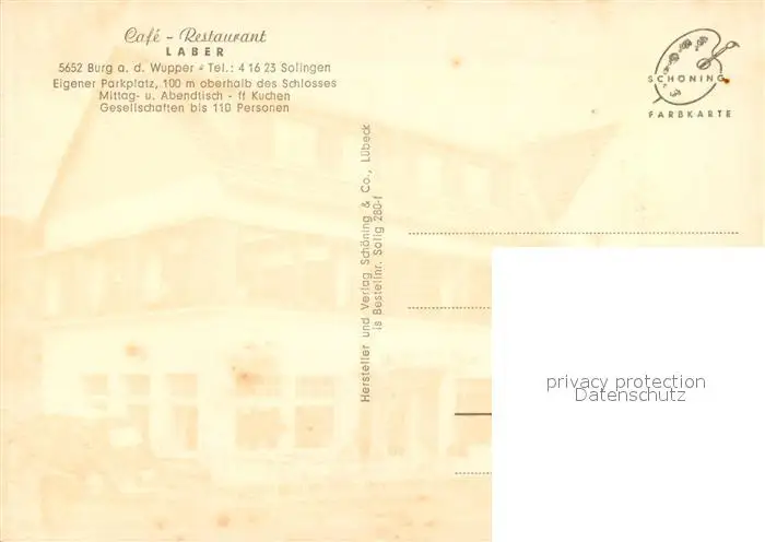 Burg_Wupper Cafe Restaurant Laber Burg Wupper postalisch nicht gelaufen nach 1965 Erhaltung siehe scans [FriedD77] Frierer