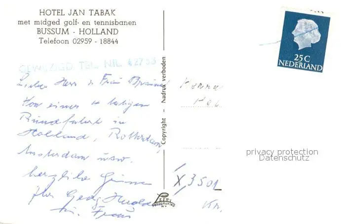 Bussum Hotel Jan Tabak Entree Bussum postalisch gelaufen nach 1965 Erhaltung siehe scans [WerneD78] WernPID7
