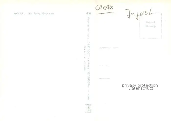 Cacak_Tschatschak Ul. Ratka Mitrovka postalisch nicht gelaufen 1957 Erhaltung siehe scans [FriedD77] Frierer