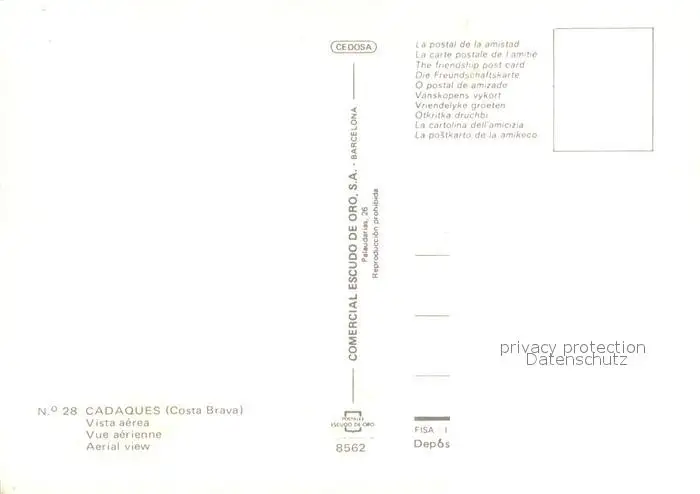 Cadaques_ES Fliegeraufnahme postalisch nicht gelaufen nach 1965 Erhaltung siehe scans [FriedD77] Frierer