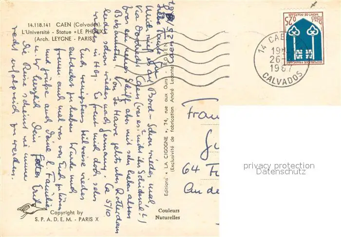 Caen Université Statue Le Phenix Architecte Leygne Caen postalisch gelaufen 1967 Erhaltung siehe scans [FriedD77] Frierer