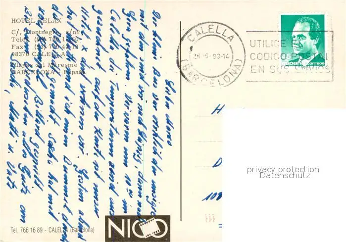 Calella Hotel Relax Calella postalisch gelaufen 1993 Erhaltung siehe scans [WerneD78] WernPID7