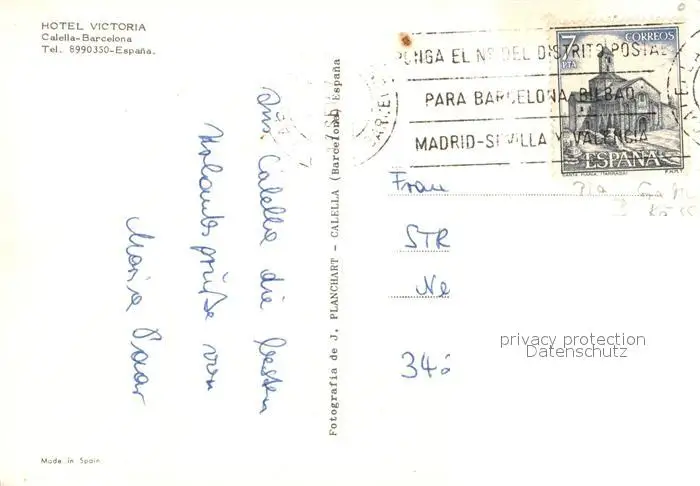 Calella Hotel Victoria Calella postalisch gelaufen nach 1965 Erhaltung siehe scans [LiesaD40] LiesID40