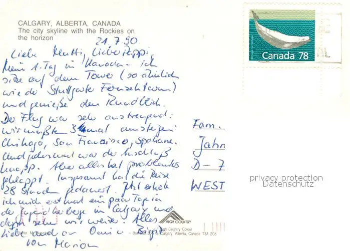 Calgary The city skyline with the Rockies on the horizon Calgary postalisch gelaufen 1990 Erhaltung siehe scans [WerneD78] WernPID7