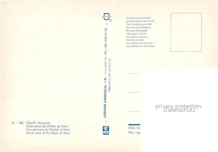 Calpe Vista aérea del Penon de Ifach Calpe postalisch nicht gelaufen nach 1965 Erhaltung siehe scans [FriedD77] Frierer