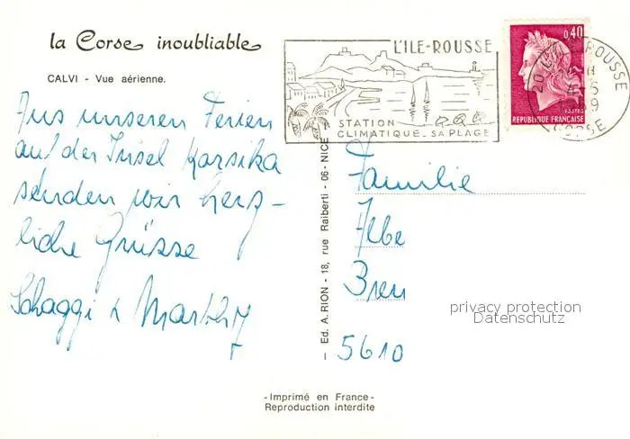 Calvi Vue aérienne Calvi postalisch gelaufen 1969 Erhaltung siehe scans [FriedD77] Frierer